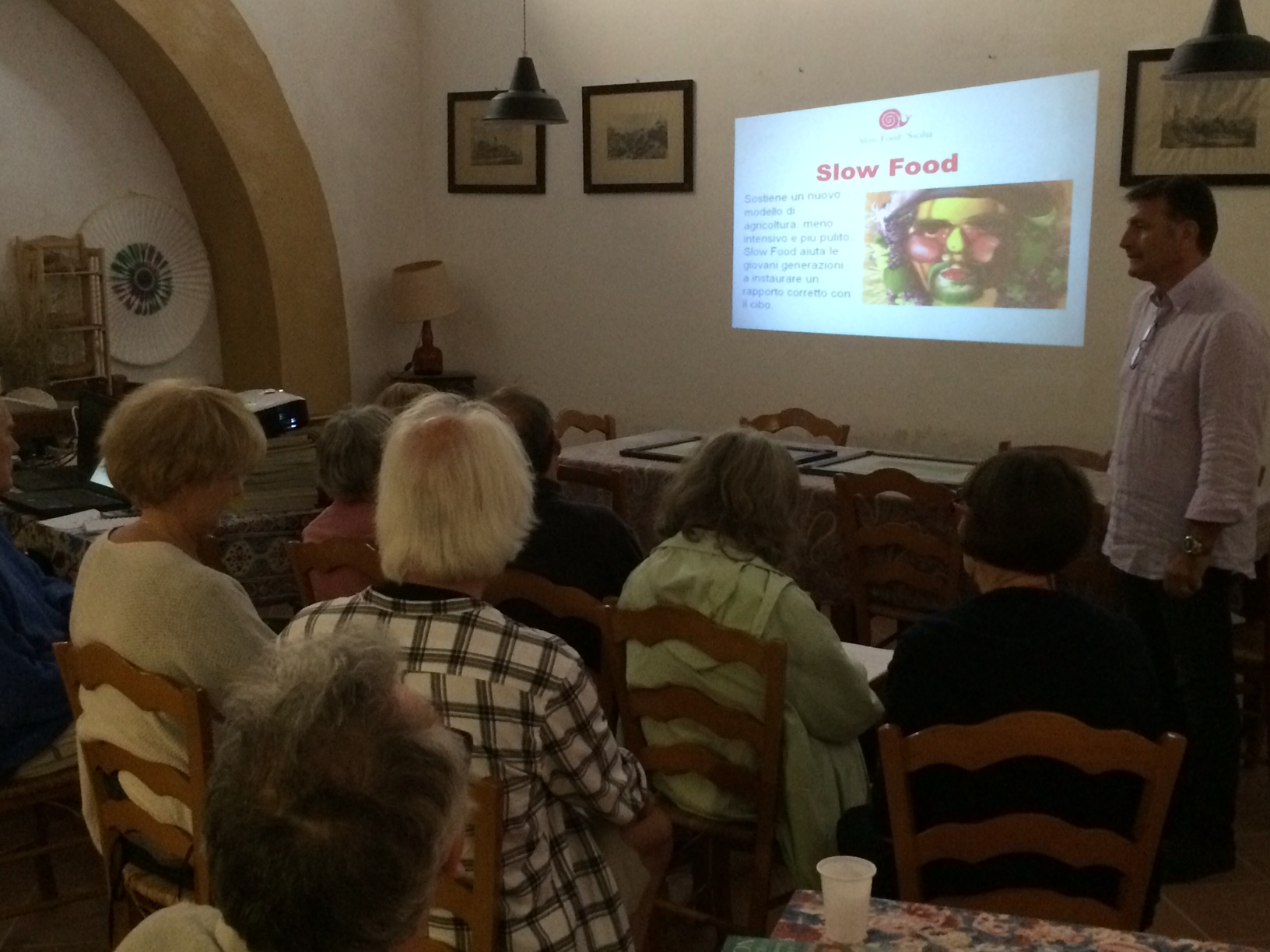 Saro Gugliotta, President of Slow Food Sicily, during his talk at Fattoria Mose`